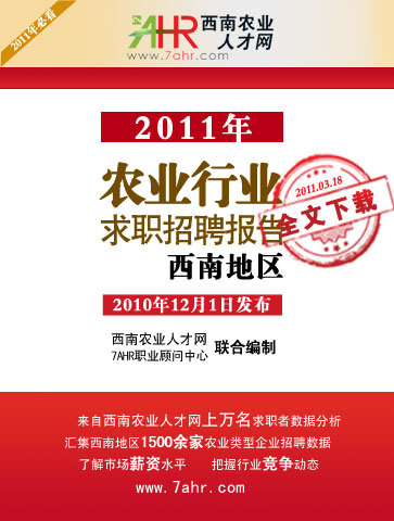 本报告部分亦可被其他媒体单位转载或引用,但需要标明出处为西南农业人才网www.7ahr.com。
