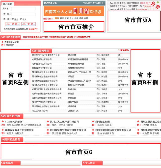 四川、成都首页右侧,公告下边,位置醒目。 |