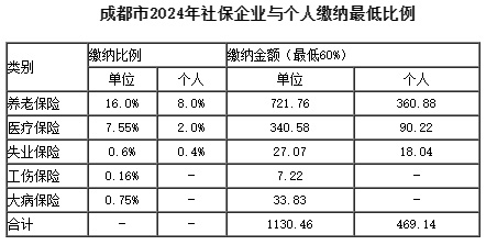 成都市2024年1-8月每月社保企业与个人补缴最低标准