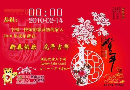 您们好!虎年新春佳节已至,新春新景。我们一起又迎来了新的一年,在这迎新之际,西南农业人才网(www.7ahr.com)祝您虎年快乐,新春吉祥。